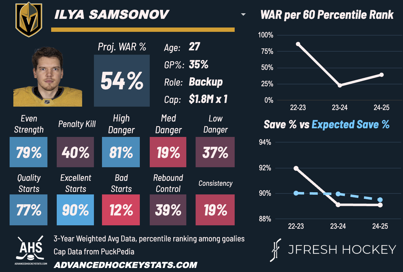 While Samsonov may not be a starter, he is a more than capable backup and would clearly add to a Baracuda team that will be looking to replace Askarov's services.