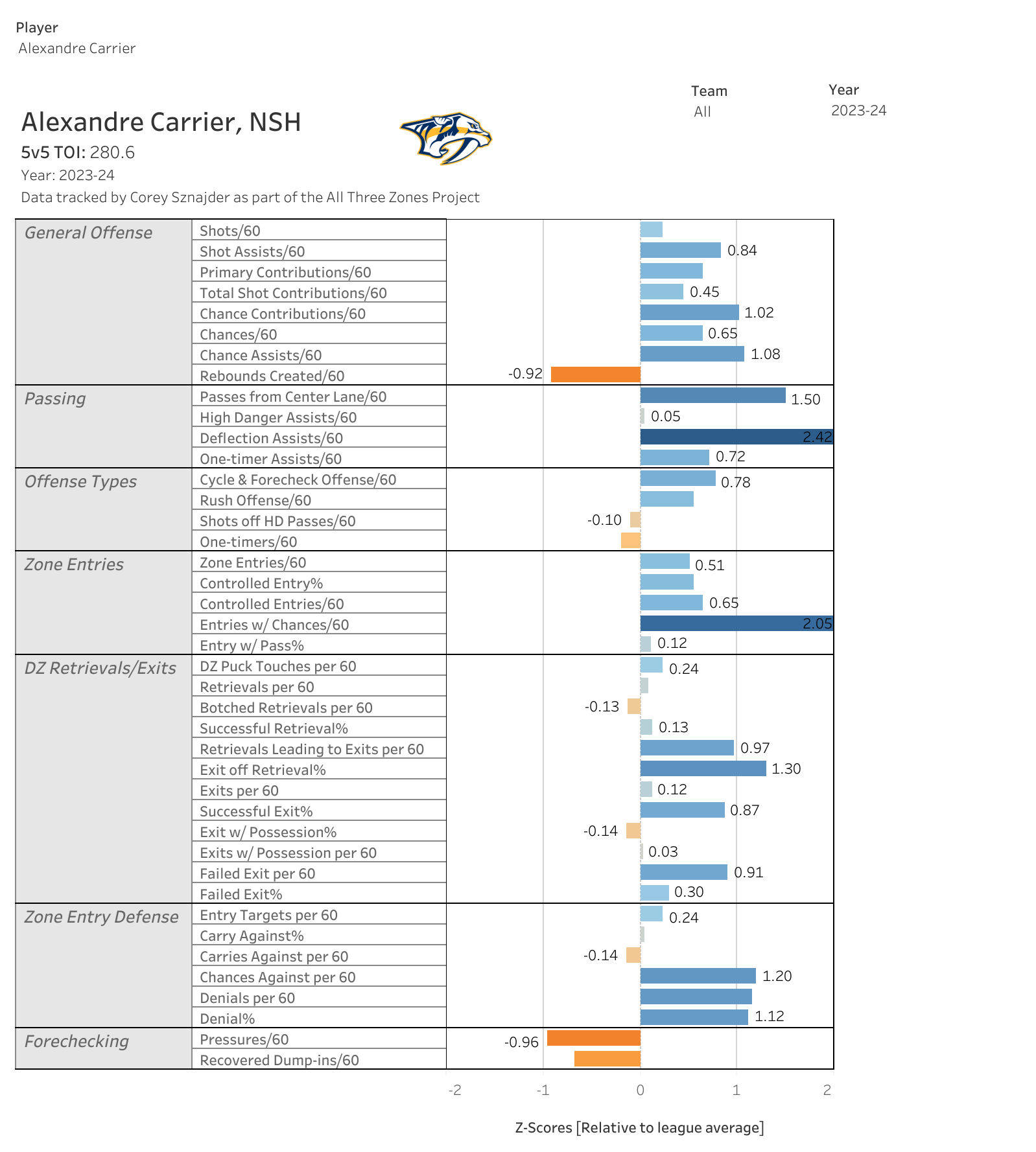 Carrier would provide the Sharks with something they lack: a player who can successfully move the puck. While Carrier's production (4 goals, 16 assists) does not scream offense, Roman Josi rightfully commands the bulk of the offense for Nashville. Carrier's skills should translate to a larger offensive production in a new situation.