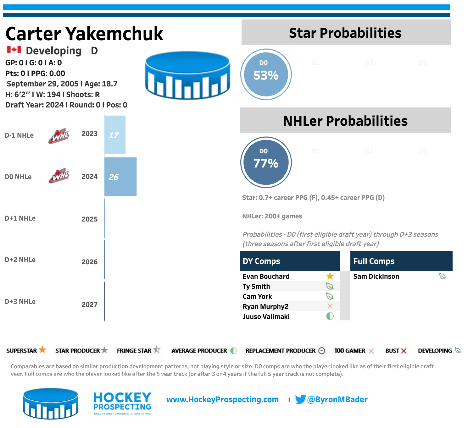 If you like offense mixed with a violent defender. This is your guy. Yakemchuk feels like a Mike Grier defender. Someone who isn't afraid to mix it up (120 PIM) but can also score (30 goals in 66 games). At 6'3", Yakemchuk is incredibly agile and can dangle with the best of them.