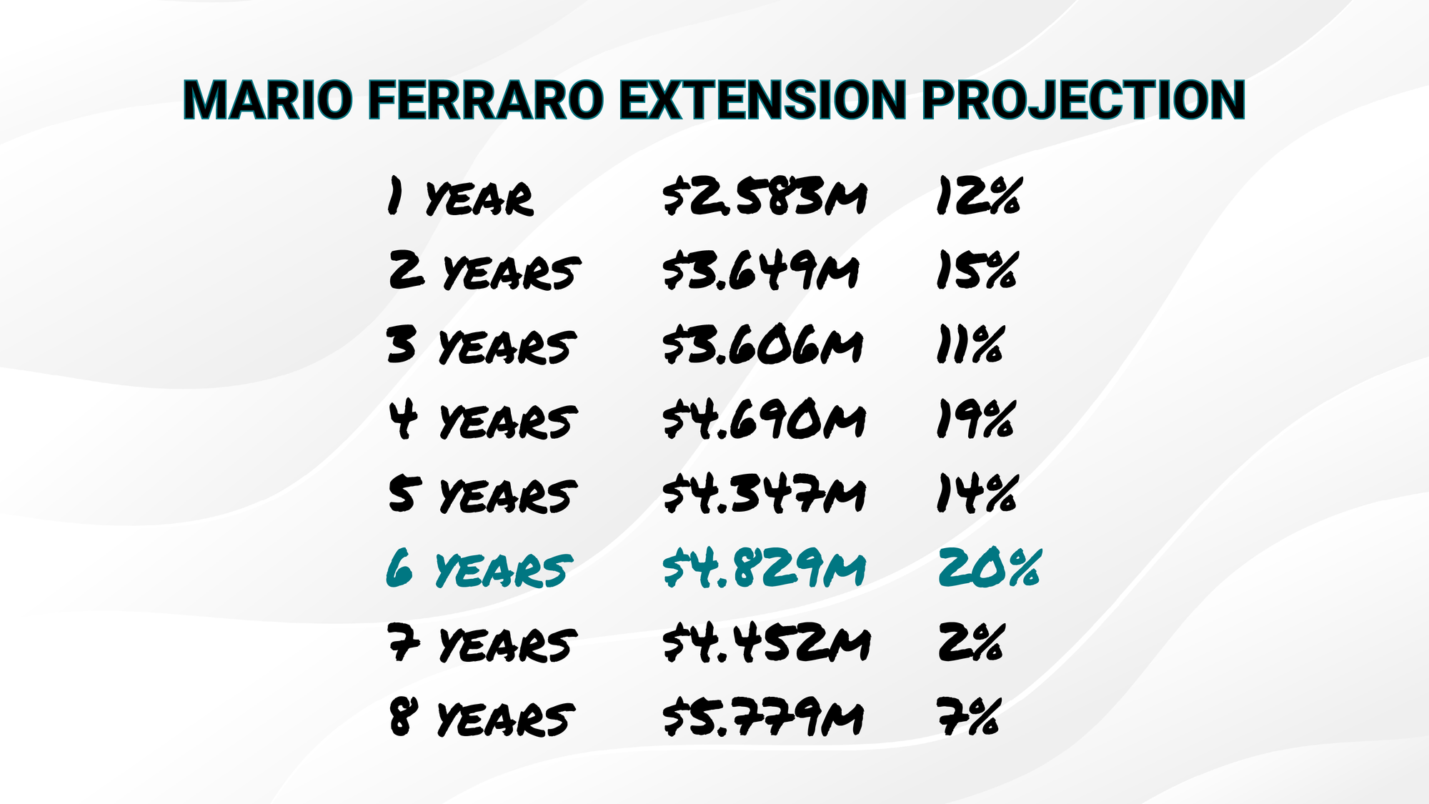 Offering Ferraro a six-year deal doesn't seem like a great idea for a team in the middle of a rebuild. While being able to pencil in 75+ games a season and over 21 minutes a night for the next six years would be worth locking in, Ferraro could start to break down with his style of play.