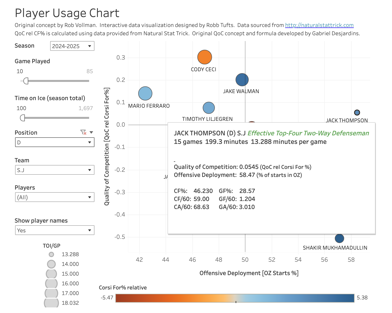 Thompson can use this time as an audition for next season to establish himself as a mainstay on the Sharks as they look to rebuild their defensive group with Yaroslav Askarov expected to take the reigns full time next year.